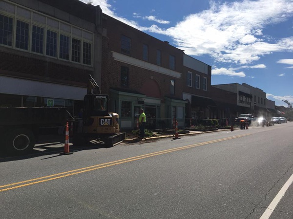 It's a busy day in Valdese! Our new streetscape project is underway in downtown bringing new parking, stamped brick crosswalks and new planter boxes! #myvaldese #valdesestreetscaperedo
